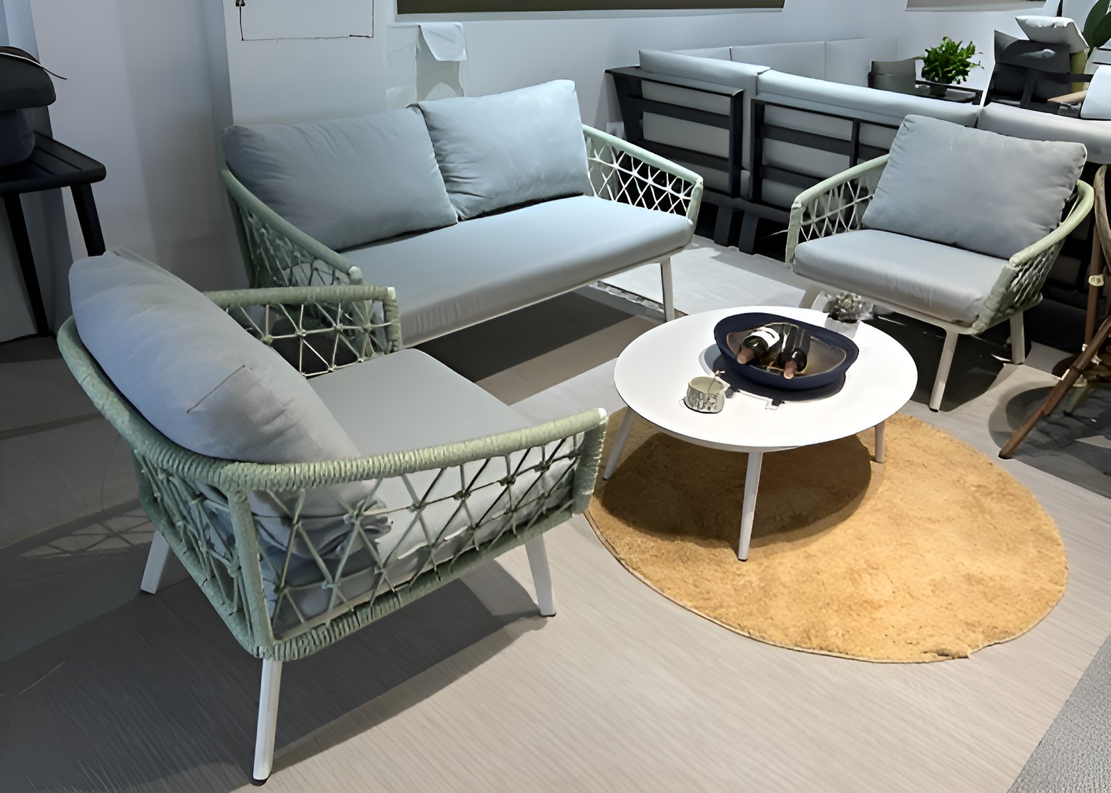 طقم جلوس خارجي من الألمنيوم 3+1+1+1 مع طاولة قهوة
